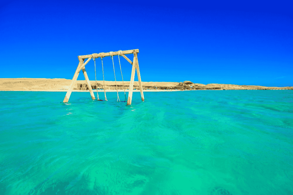 After enjoying an open buffet lunch prepared on board, you’ll reach Orange Bay Island by traditional felucca boat. Spend time relaxing on white sandy beaches, swimming in turquoise waters, playing volleyball, or enjoying the famous swings over the sea.